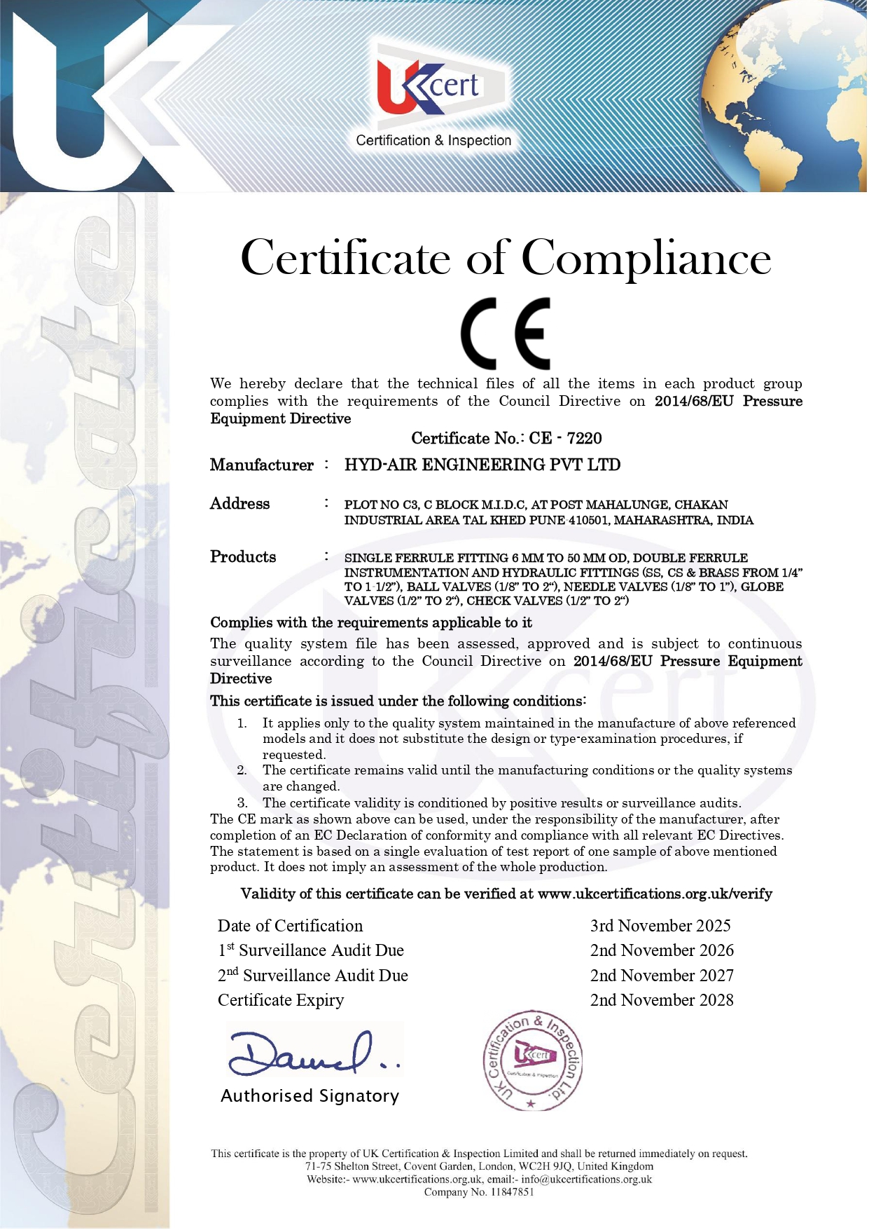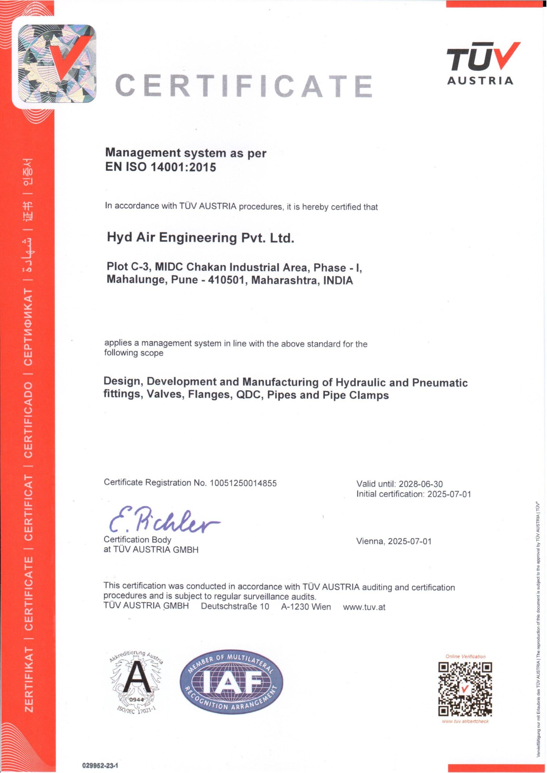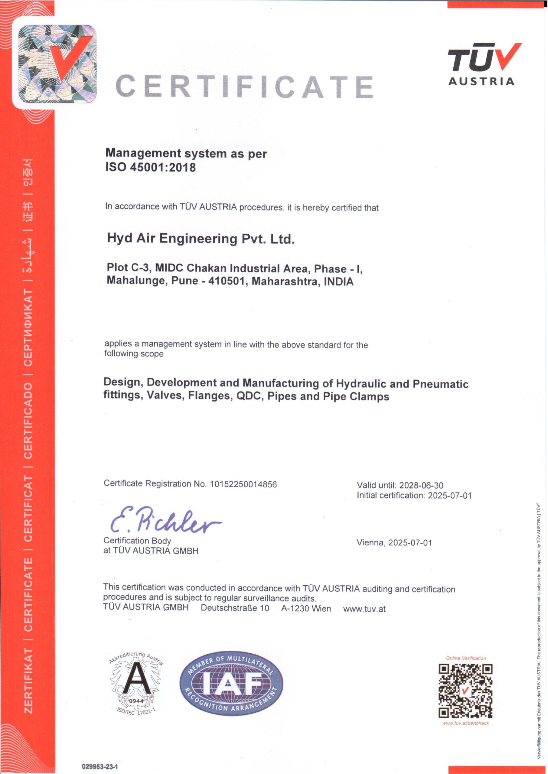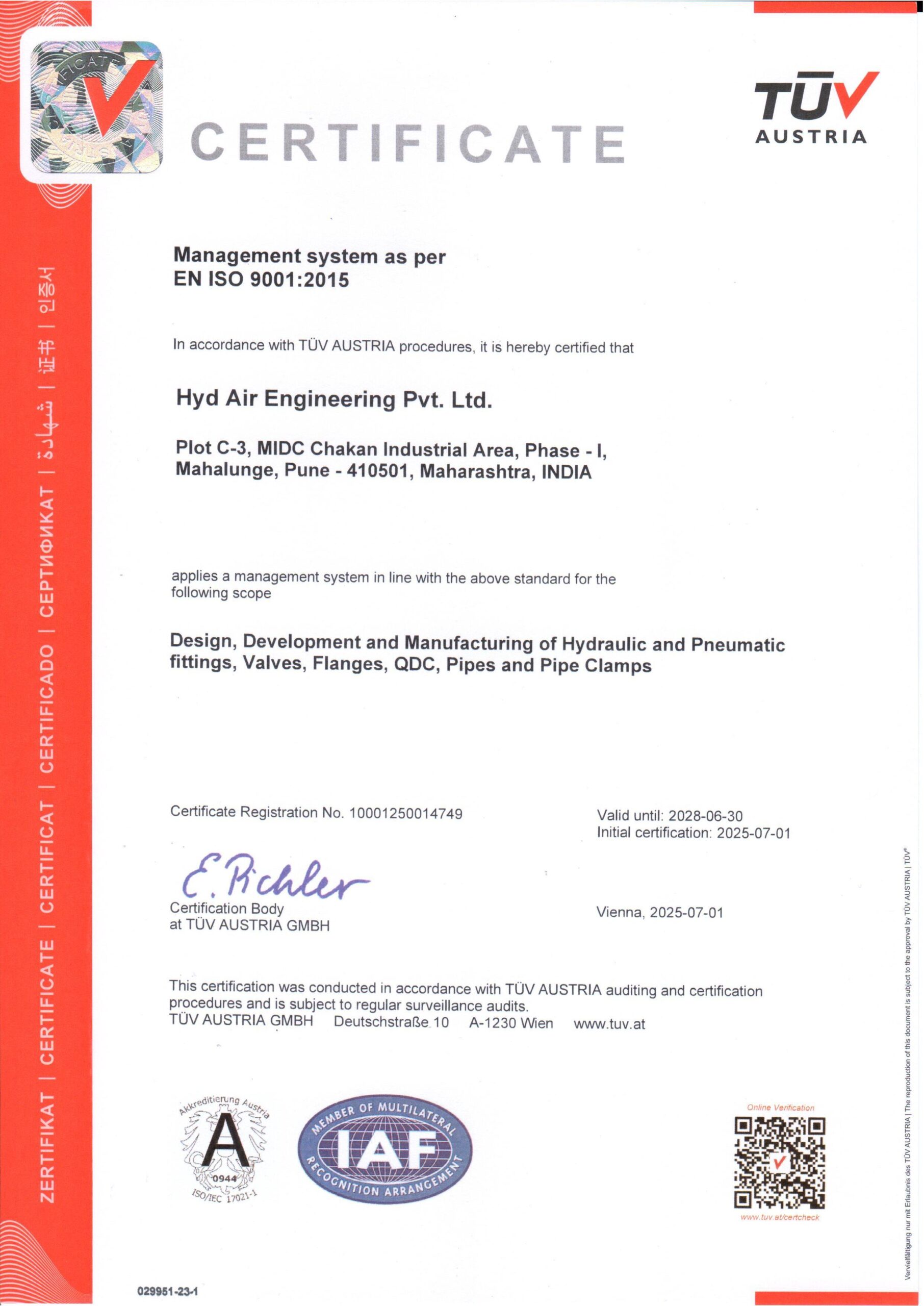 Hyd Air is ISO 9001:2015 certified company by IQNet and RINA – for the last 50 years, the company has provided IEC standard materials with performance-driving DIN products.